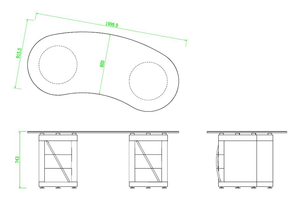 The Pimlico’s rounded edges and curving tabletop contrast with the unconventional positioning of the drawer handles, which cut diagonally across each drum, confronting expectations.