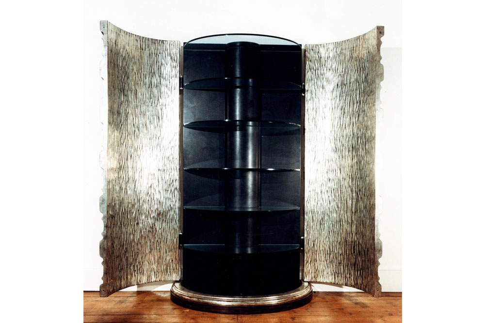 An opulent hand carved cabinet with lacquered interior finished in white gold.